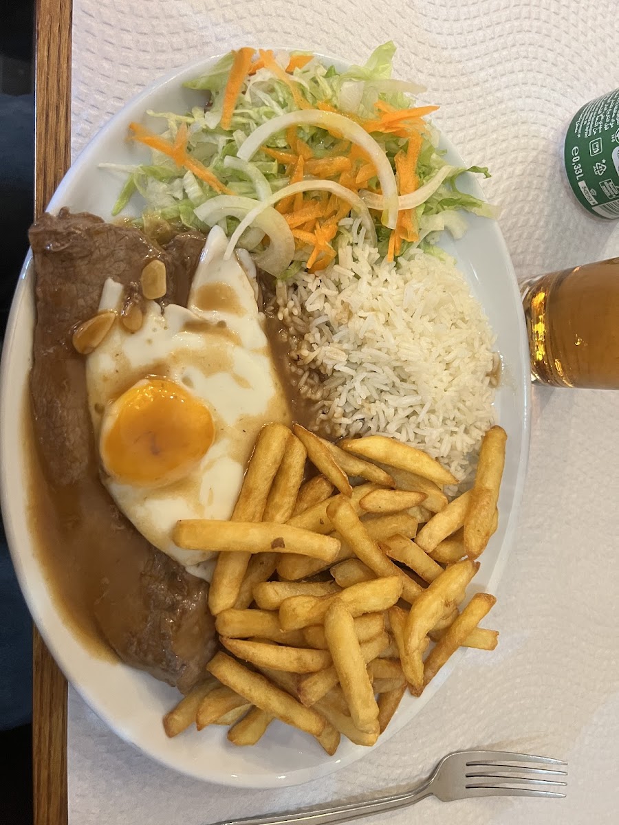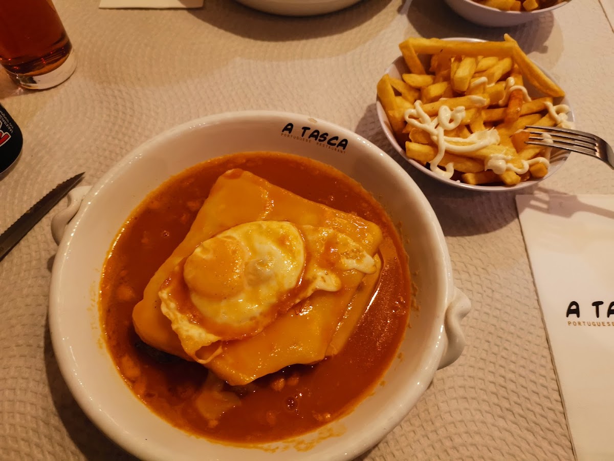 One of the standout dishes is Francesinha, a hearty sandwich layered with cured meats and smothered in rich cheese and a savory sauce. It’s comfort food at its best, perfect for those who love bold flavors. For a lighter option, try Arroz Mariscos - a seafood rice dish that’s bursting with the freshest catches. If you're in the mood for a meaty delight, Bitoque (a traditional Portuguese steak) is sure to satisfy. For something on the side, don’t miss the crispy Patatas Bravas or the deliciously smoky BBQ Chicken Skewer.